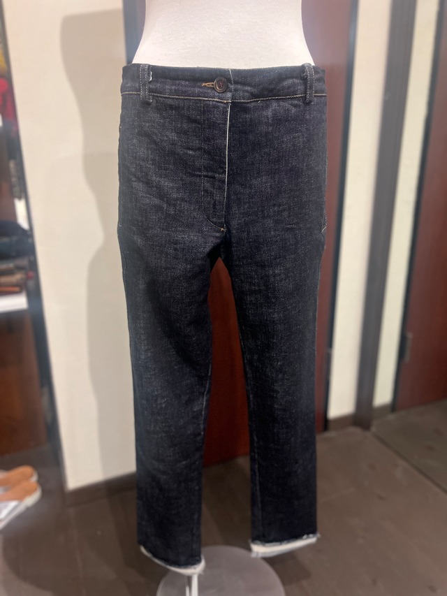 HANNOH WESSEL/PANTS Prunelia F25392-17 ウォッシュ加工されヴィンテージ感あふれるデニム。伸縮性もあり履き心地もよいです。 デニムってなかなかかっこいい色落ち感出すのむつかしいと思いますがそこはHANNOHならではなスタイリッシュなデザインとシルエットのきれいさがとても生きていると思います! 素材:98%cotton、2%EA lining &details 100%cotton Size:36 着丈約99.5㎝(股下71㎝)、ウエスト35.5㎝、わたり30㎝ Size:38 着丈約100㎝(股下73㎝)、ウエスト39㎝、わたり32㎝ col:STONED27 ※※HANNOH WESSEL※※ 1994年にスタートしたフランスのファッションブランド。 デザイナーのHANNOH WESSELはNY、Parisでコレクションを発表。 ヴィンテージに精通し、エレガントでワークっぽい作品も多い。 イタリア製にこだわったリネンコットン、ウールなど天然素材を生かしたディリーウエアに馴染むユニセックスで着こなせるデザインのアイテムを展開している。