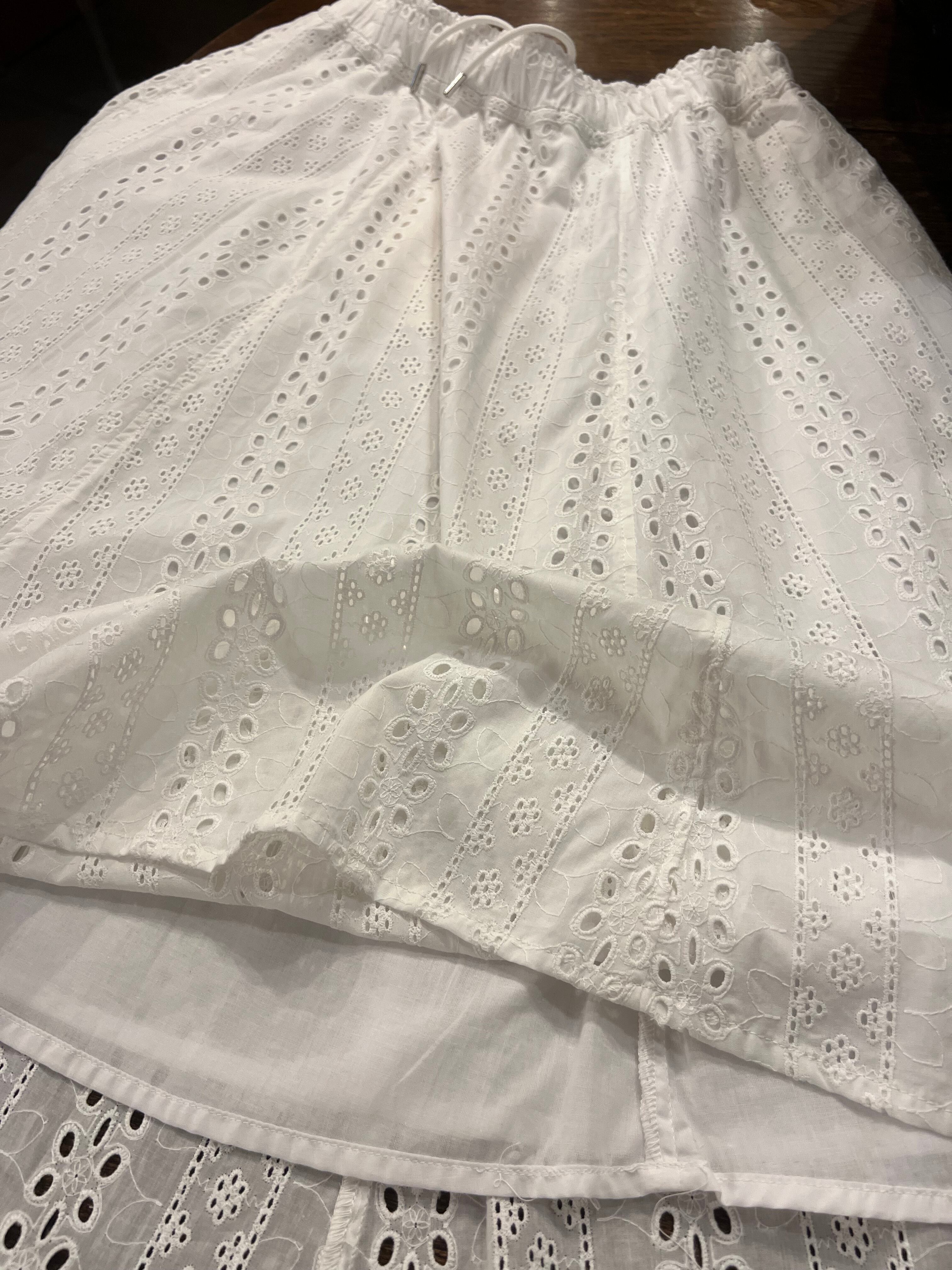 優しいコットンレースシリーズのスカート編。ブラウスもありますのでセットアップも可能です。いつの時代も可愛いと思える刺繍。幅広い年齢層の方へご提案しております。ペチも入っているので透け感対策もok!