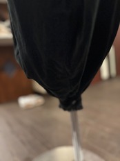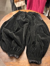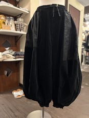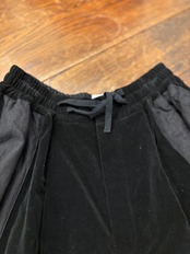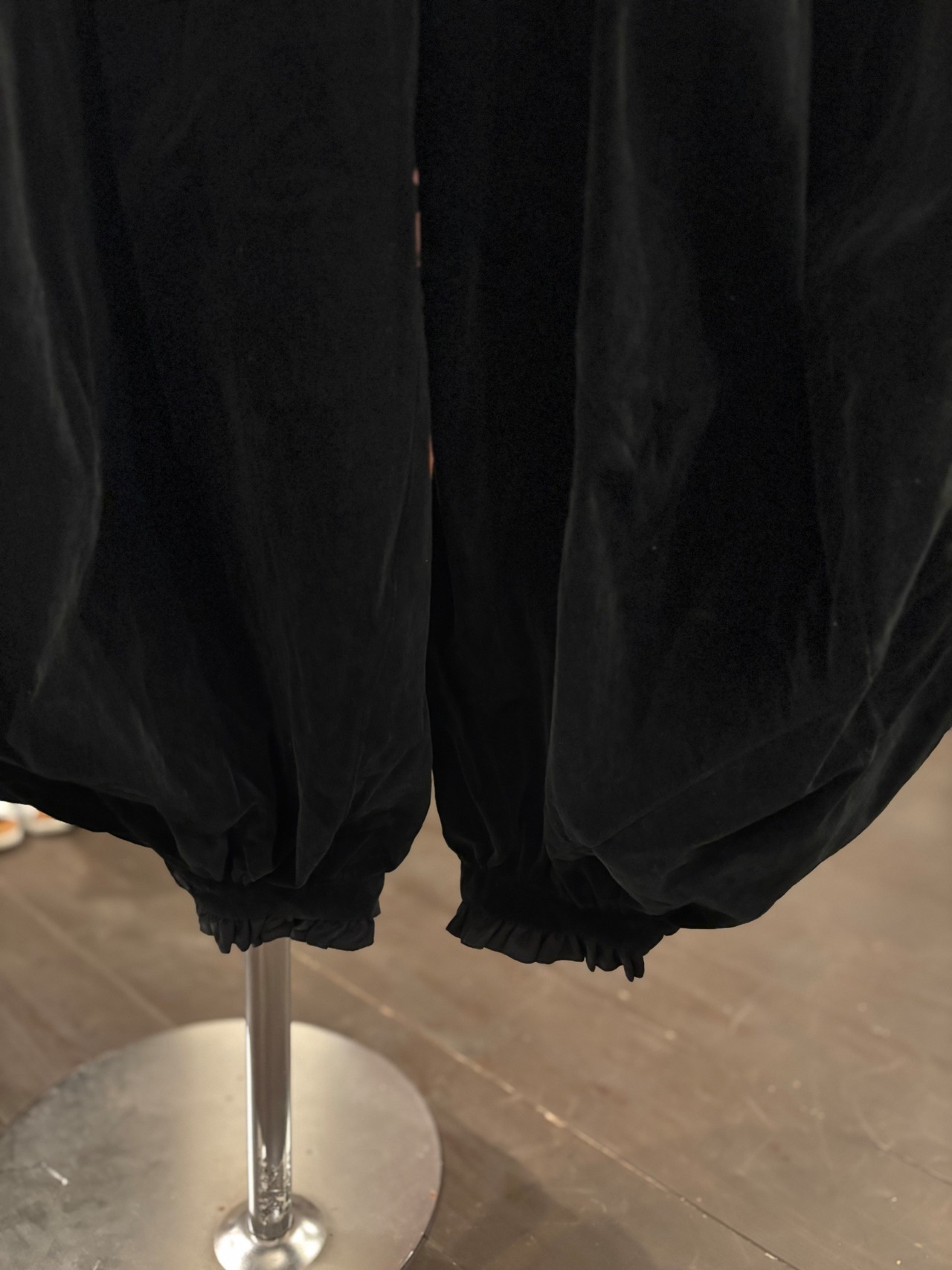 伸び良く高密度なベロアが心地よく、持った時より履いた時の軽さや履きご心地の良さに驚きます。形状がキープされているような可愛いシルエット。当店では裾足もとの部分の、贅沢にあしらわれたタックのフリル部分を楽しめるように小ぶりな36をご用意いたしました。150㎝代の小柄な方にも是非お勧めです(もちろんフリーサイズ感覚で楽しんでいただけるようなゆったりサイズ感です)