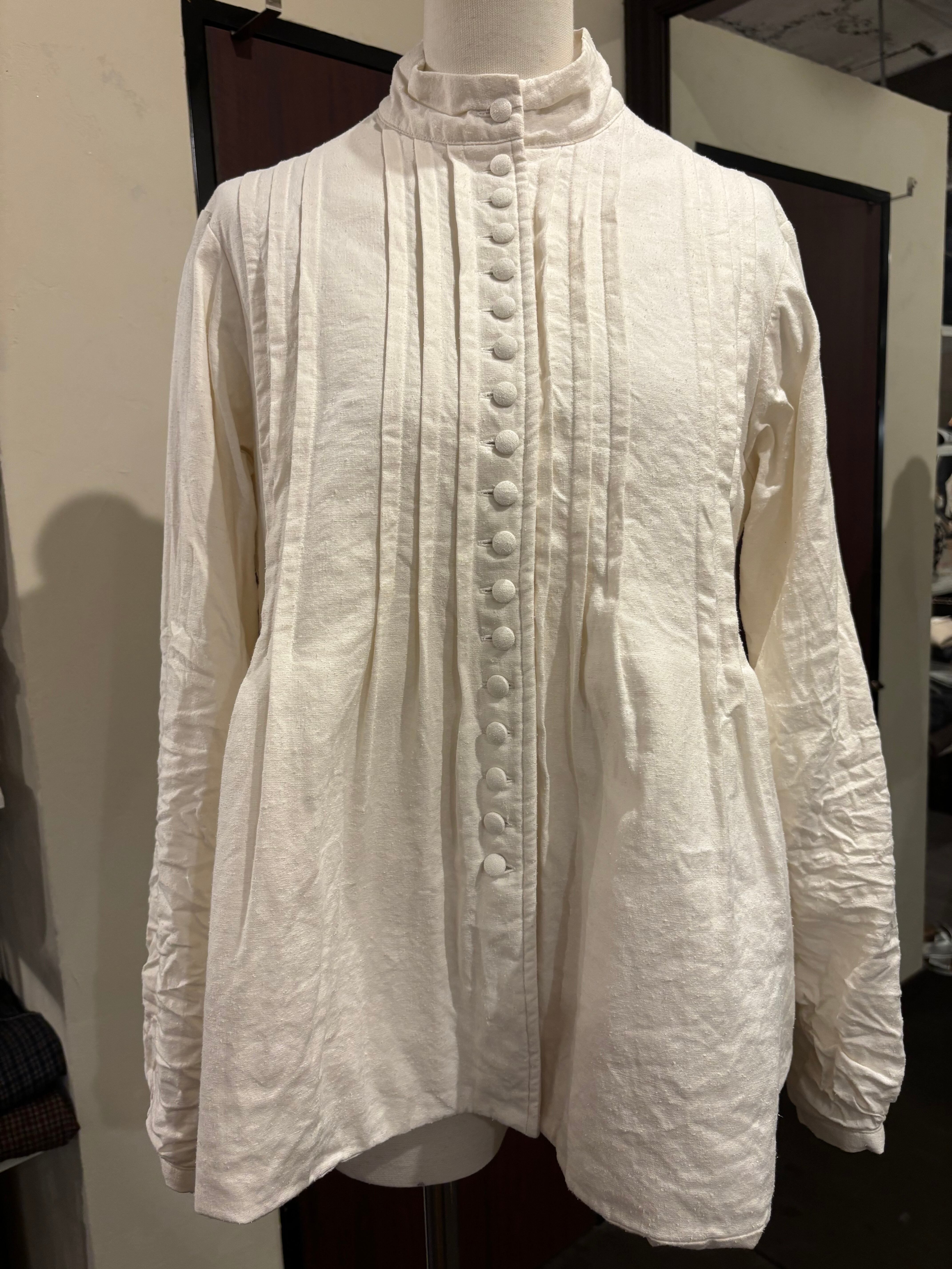 羽織りとしても十分使えるこれからの季節に是非ともおすすめしたい作品です。アンティーク好きな方の心に刺さる1920年代のクリスチャンブラウス。厳かさと素朴が隣合わせでとても素敵です。シルエットも遊び心がたっぷり。着ぶくれ感も感じさせずあったかく着ていただけること間違いなしです♪