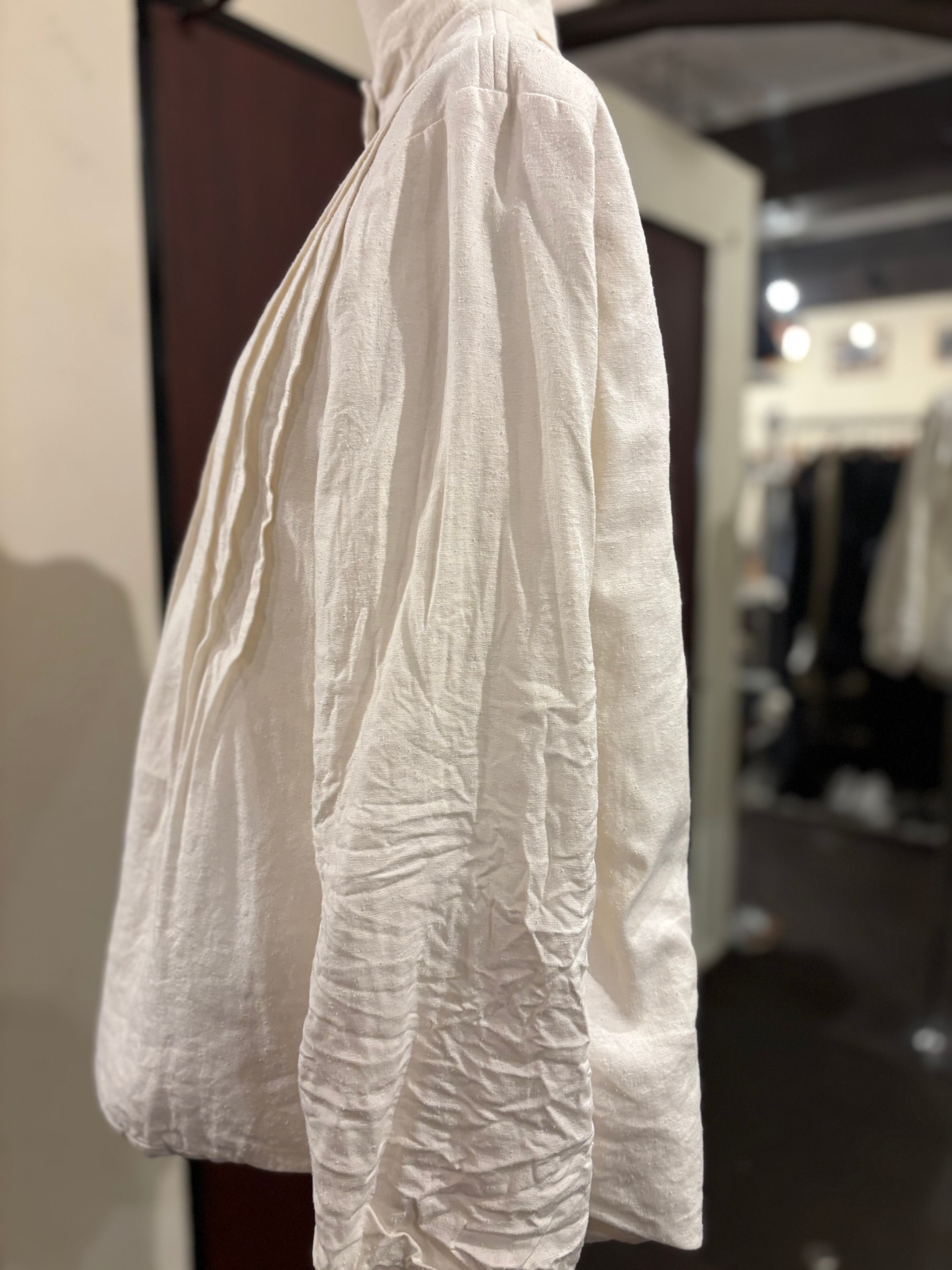 洗いざらしの手触りだけでなく光沢のある上品なシルク混素材。