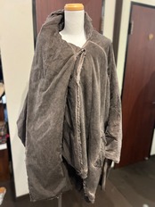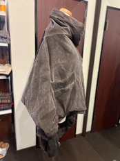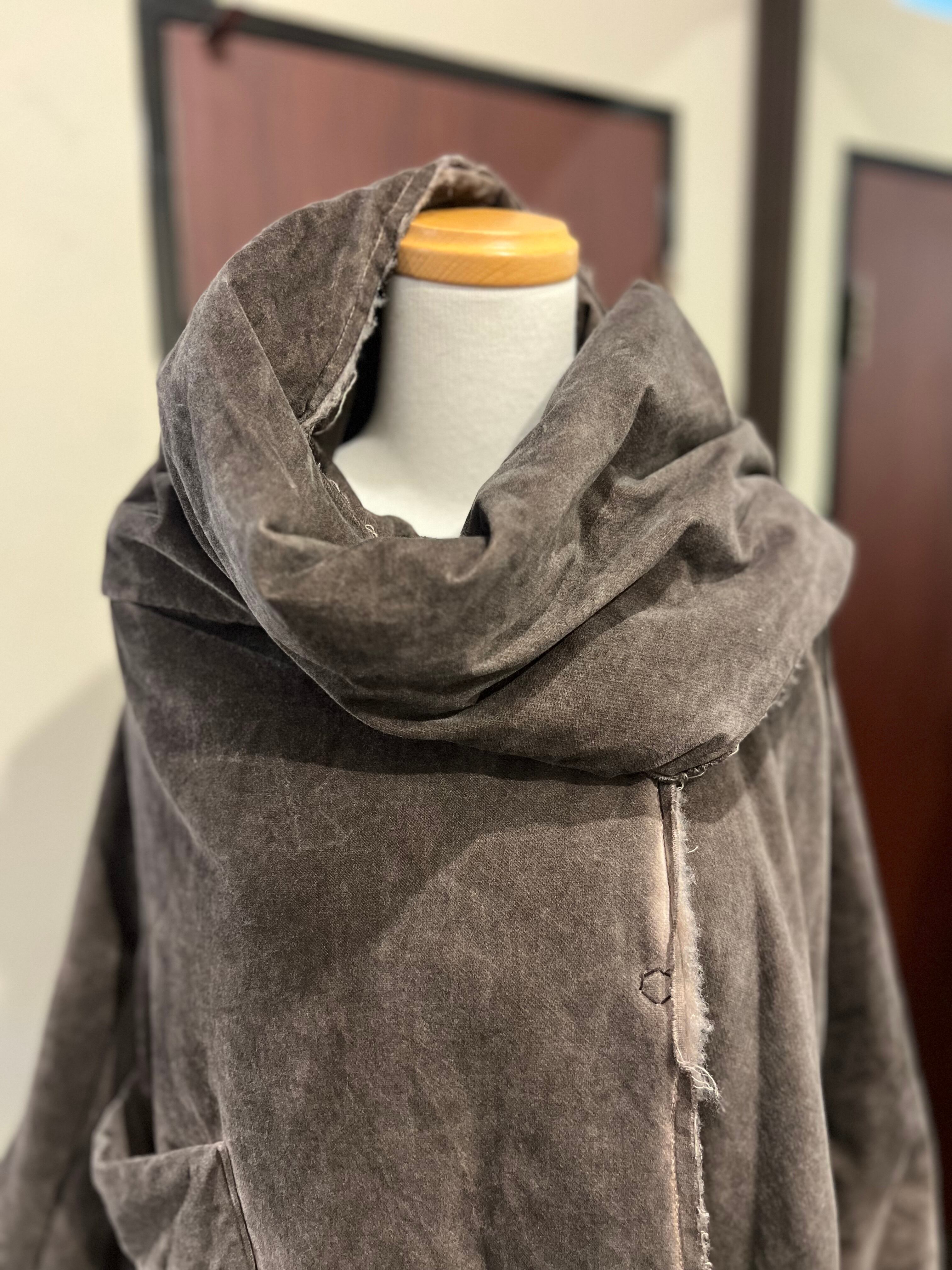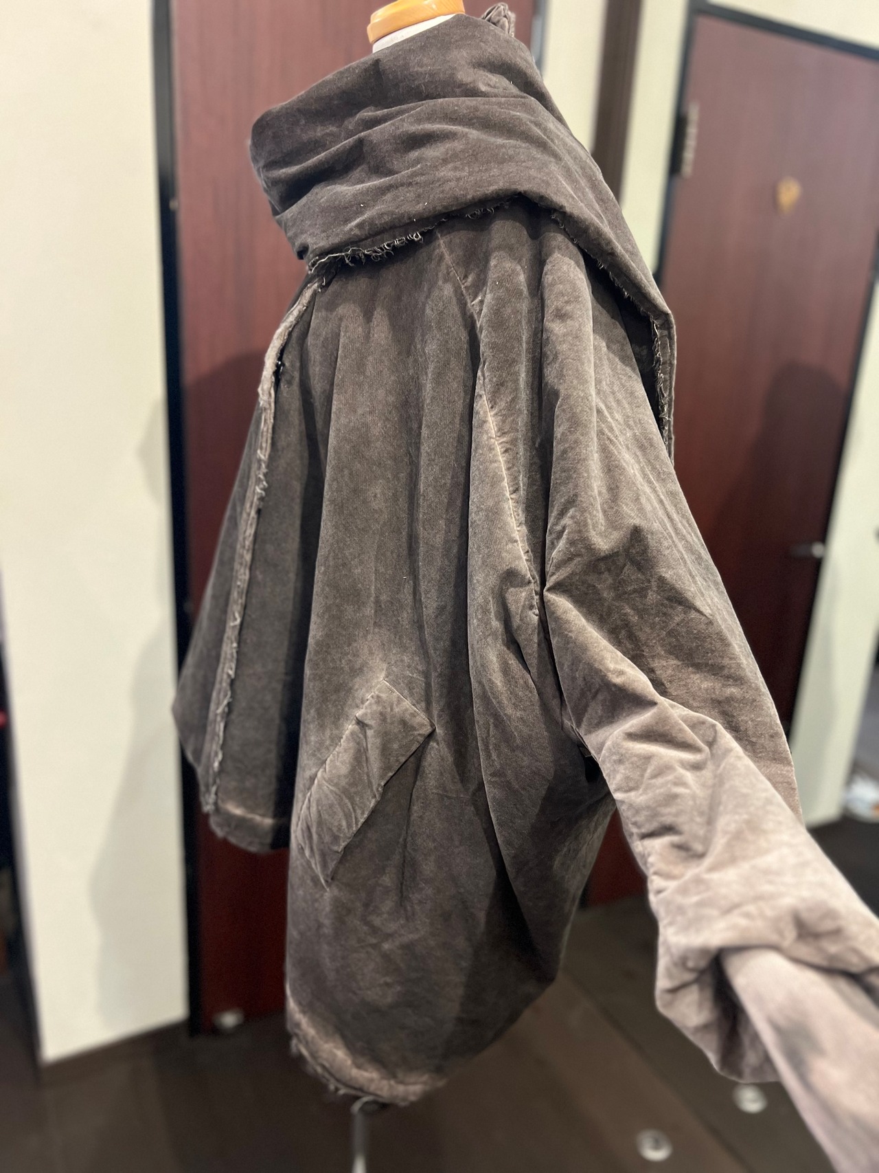 袖を通すと軽さと着やすさに驚くと思います。ストールがついたようなデザインですがまとまりが良くmodeなデザインですがラフにご愛用いただけると思います。