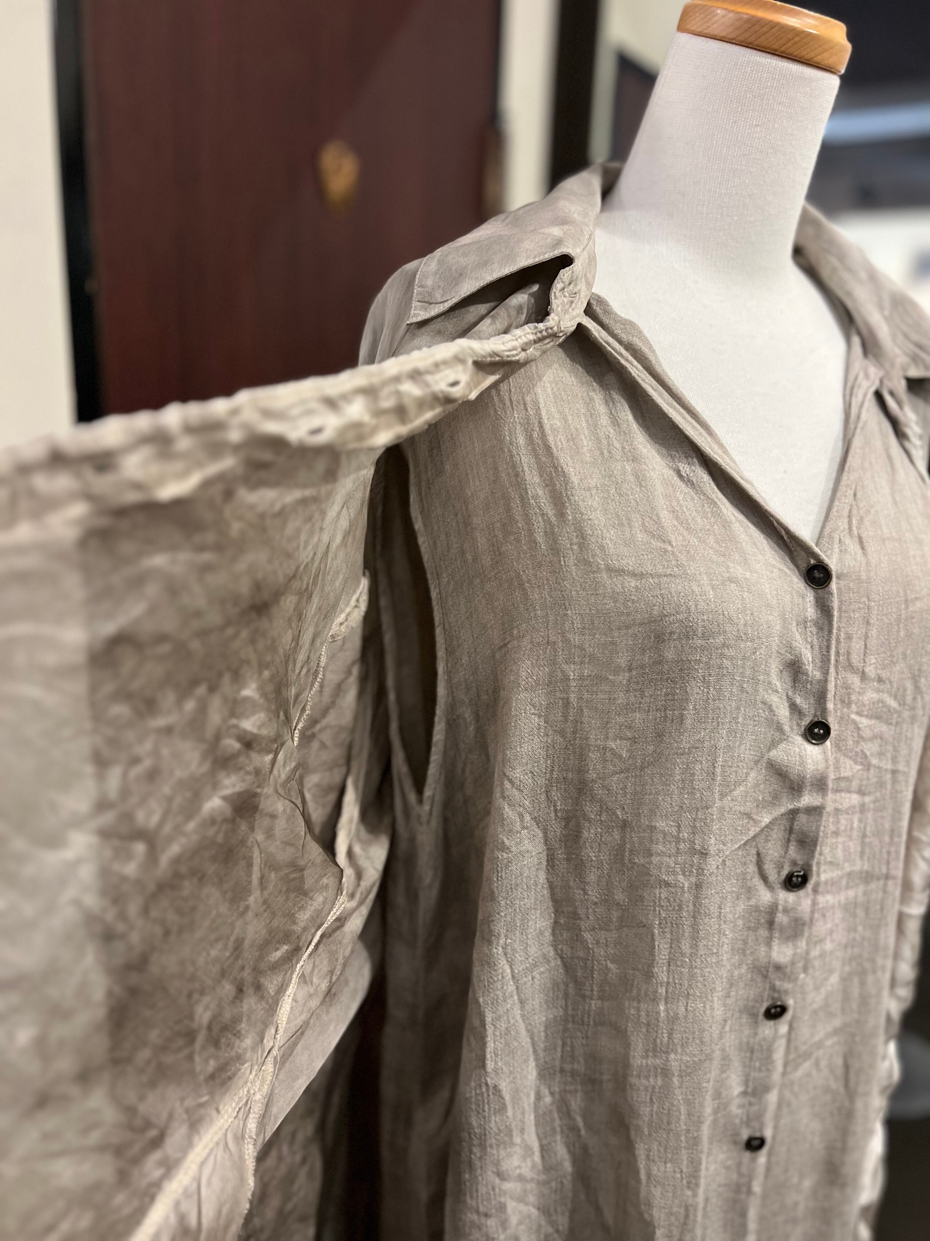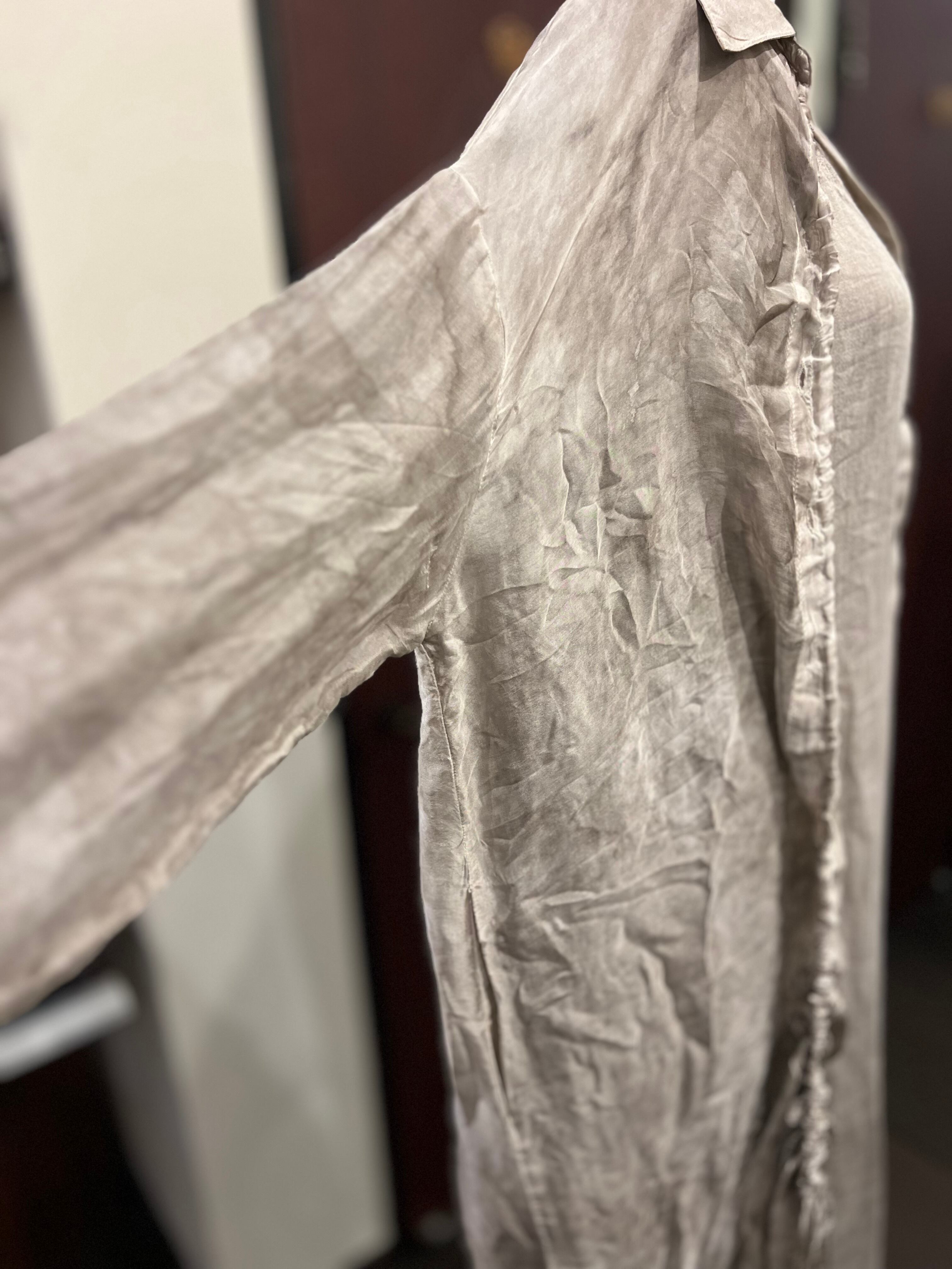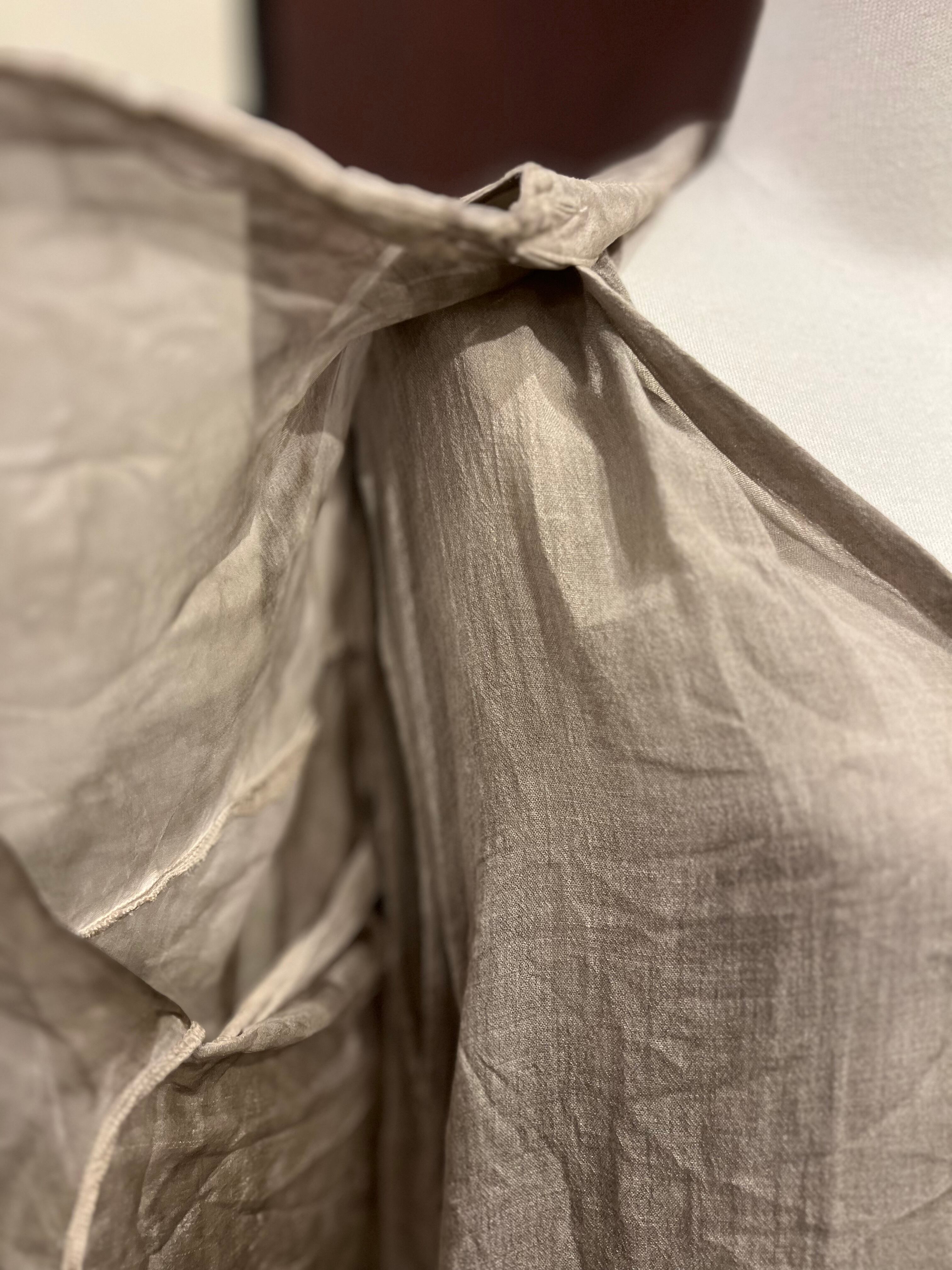 イタリア発ブランド。質感、動き、ムードによって定義されるSANCTAMUERTEは、ダークロマンスと自然なフォルムが出会う場所です。コレクションは、体に柔らかく落ちるドレープシルエットや自然素材を好み、流動的な強さの感覚を生み出します。スウィーピングコートや流れるドレスからリラックスパンツ、質感のあるチュニックや彫刻的なシャツまで、すべてのアイテムはレイヤリングと自由さを重視してデザインされています。装いは直感的になり、静かな個性の表現となります。SANCTAMUERTEを質感と抑制を通じた静かなドラマを体現するブランドと捉えています。その深く根源的なトーンと形への有機的アプローチは、地に足のついた詩的な雰囲気をコレクションに与えます。これらの服は身に着ける人と共に動き、進化し、決して静止しているようには感じさせません。