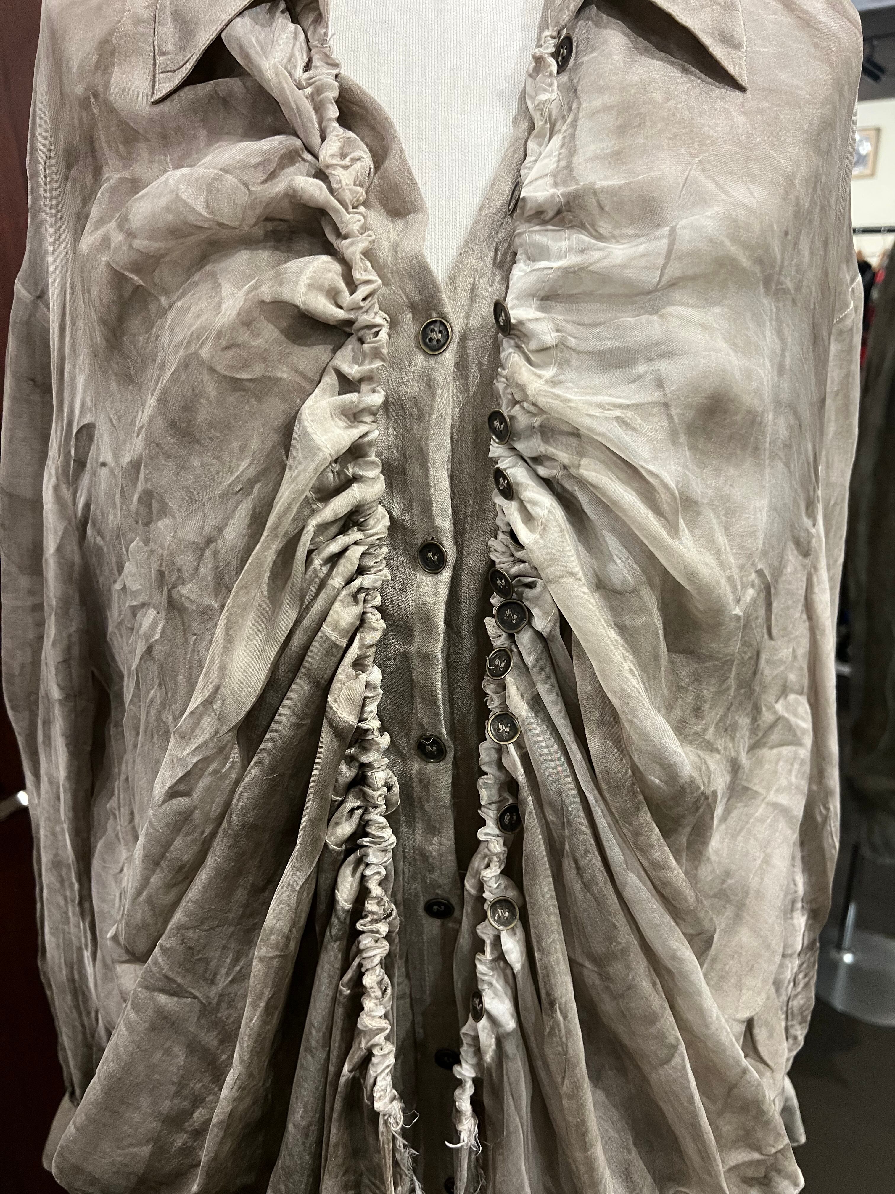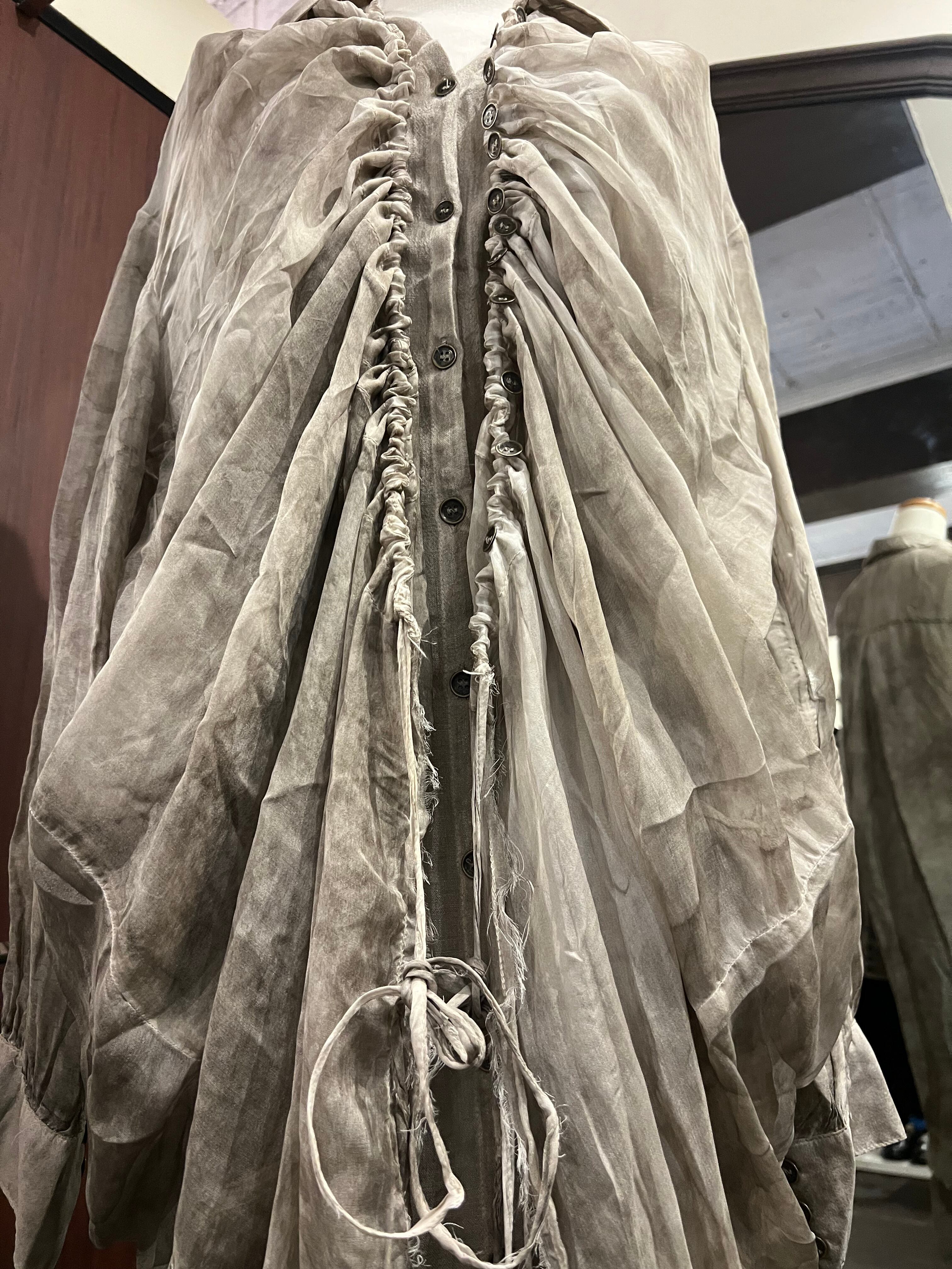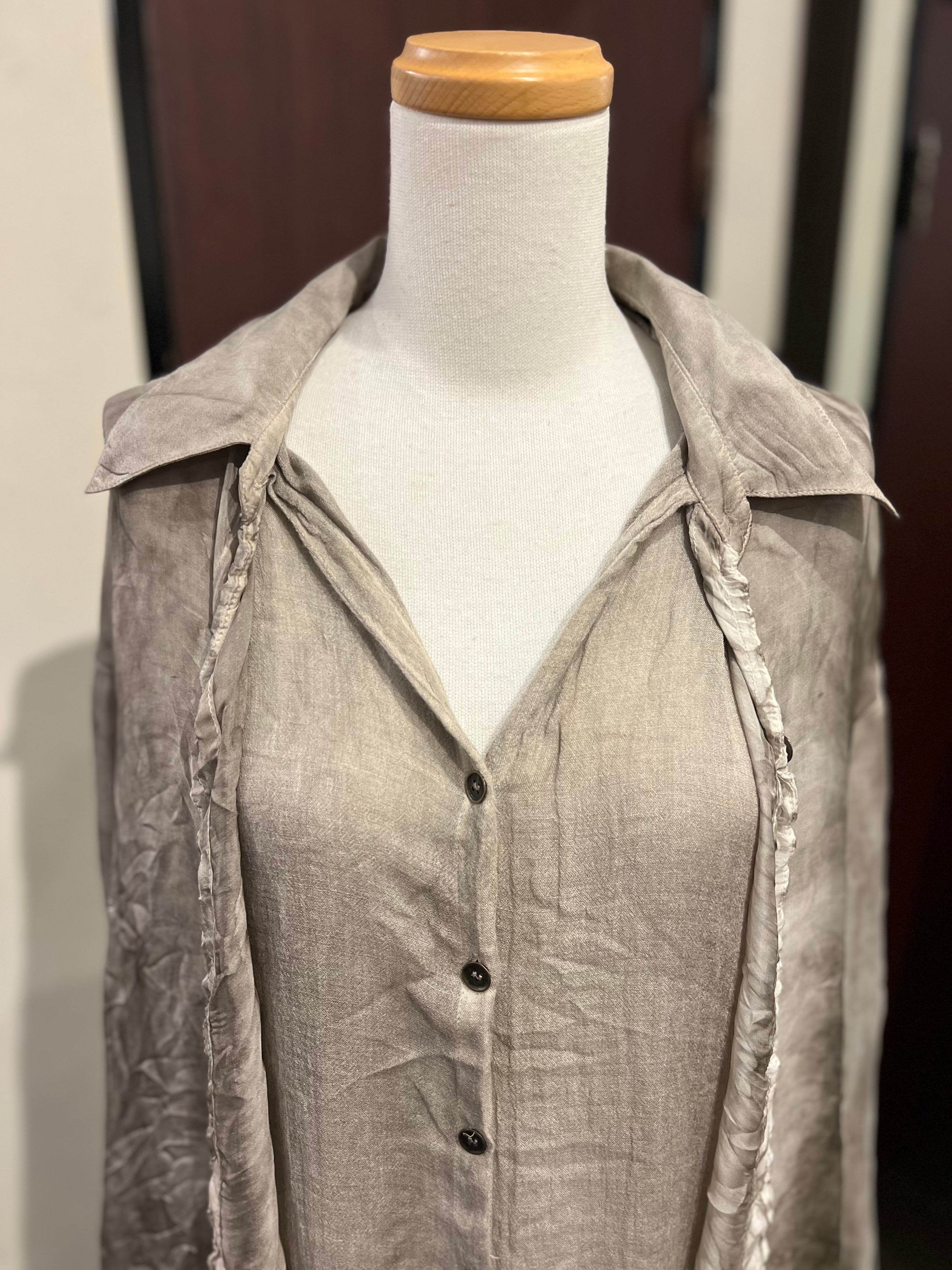 イタリア発ブランド。質感、動き、ムードによって定義されるSANCTAMUERTEは、ダークロマンスと自然なフォルムが出会う場所です。コレクションは、体に柔らかく落ちるドレープシルエットや自然素材を好み、流動的な強さの感覚を生み出します。スウィーピングコートや流れるドレスからリラックスパンツ、質感のあるチュニックや彫刻的なシャツまで、すべてのアイテムはレイヤリングと自由さを重視してデザインされています。装いは直感的になり、静かな個性の表現となります。SANCTAMUERTEを質感と抑制を通じた静かなドラマを体現するブランドと捉えています。その深く根源的なトーンと形への有機的アプローチは、地に足のついた詩的な雰囲気をコレクションに与えます。これらの服は身に着ける人と共に動き、進化し、決して静止しているようには感じさせません。