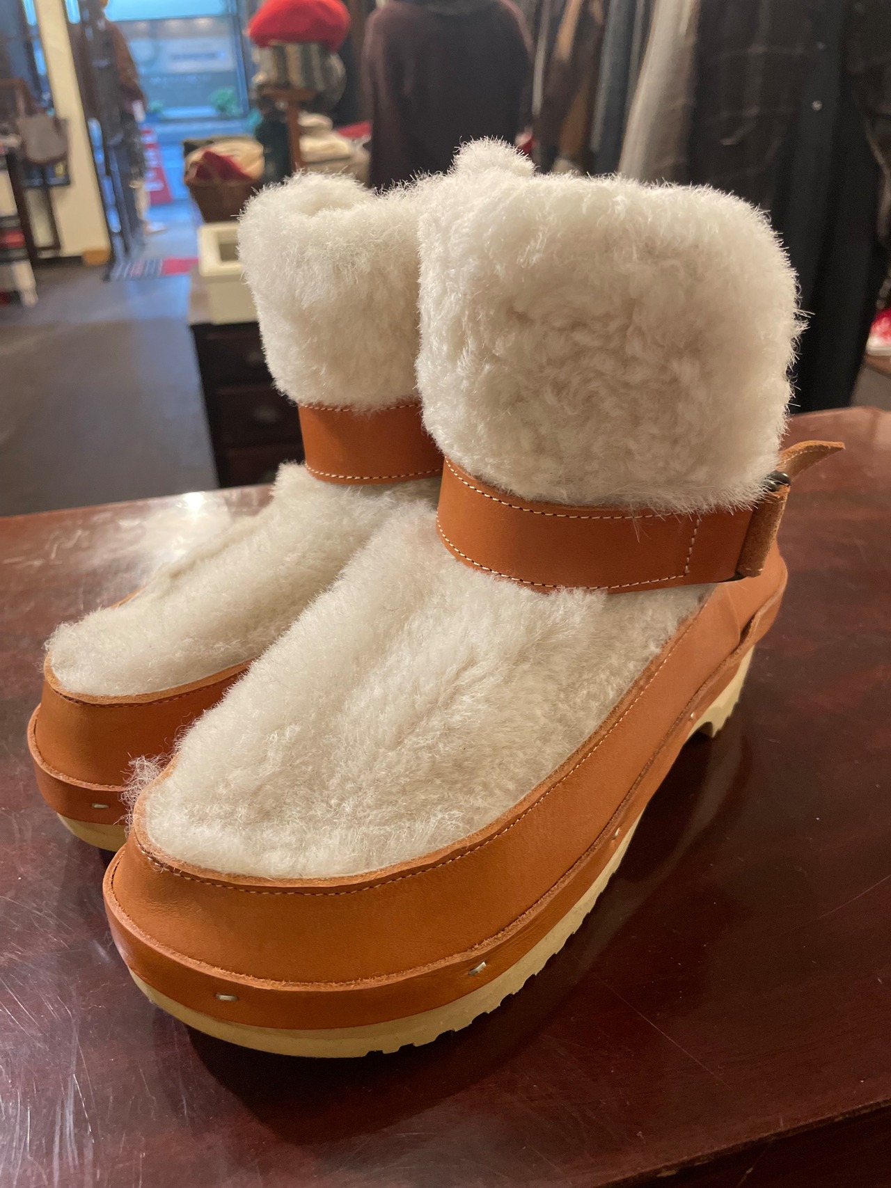 ふわふわもこもこなシープスキンをアッパーに使ったファッション性抜群のサボブーツ。ワイドもゆったりとあり、足指も締め付けられることなくベルトでしっかりと固定され安定感もGOOD!